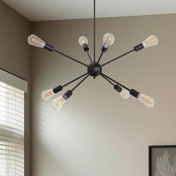Sputnik 8-Light Black Modern Farmhouse Chandelier for Kitchen with Light Bulb Type Included