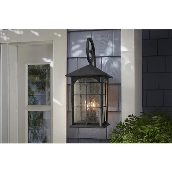 Brimfield Aged Iron 3-Light Line Voltage Hardwired Outdoor Porch Light Wall Lantern Sconce with No Bulbs Included