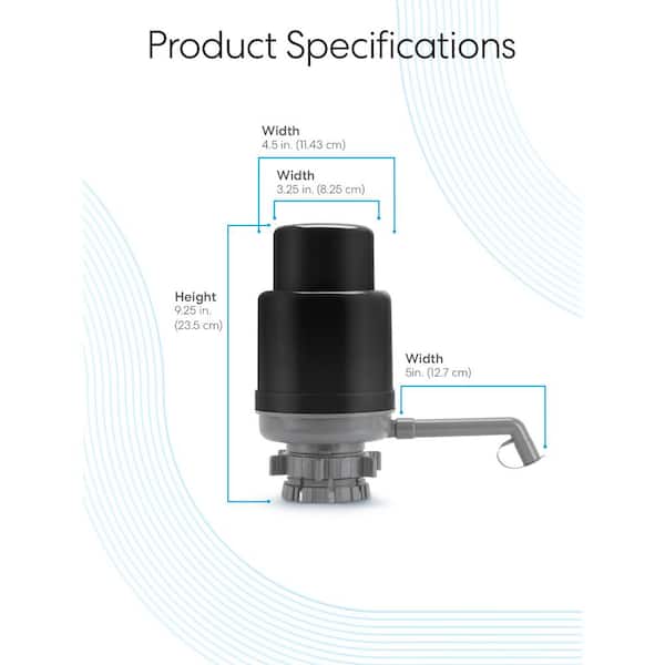 PU100BLK Universal Manual Drinking Water Pump - Fits Most 5-6 Gallon Water Bottles Including Glass (Black)