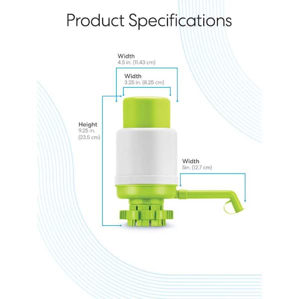 PU100LG Universal Manual Drinking Water Pump - Fits Most 5-6 Gallon Water Bottles Including Glass (Green)