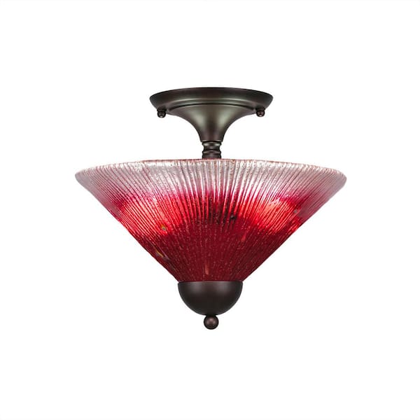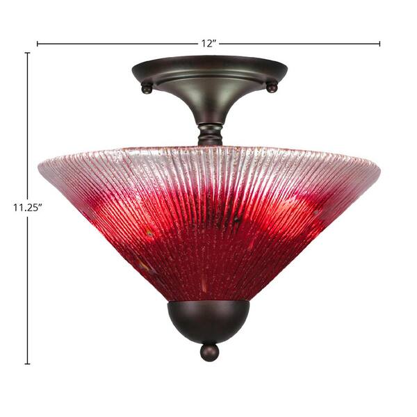 Bristol 11.25 in. 2-Light Bronze Semi-Flush with 12 in. Raspberry Crystal Glass Shade No Bulbs Included