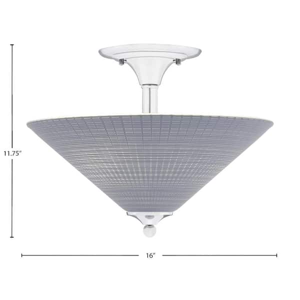 Bristol 16 in. 2-Light Chrome Transitional Semi-Flush Mount with 16 in. Gray Matrix Glass Shade, No Bulbs Inclued