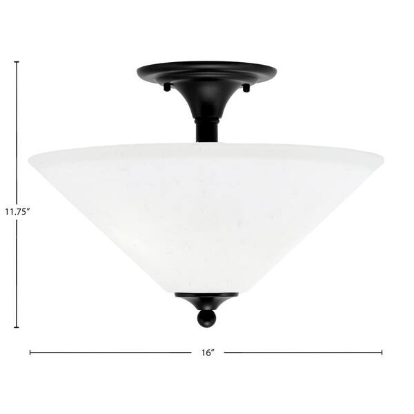Bristol 16 in. 2-Light Matte Black Transitional Semi-Flush Mount with 16 in. White Muslin Glass Shade, No Bulbs Inclued