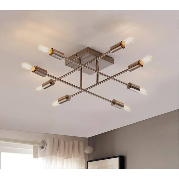 Halton 19.5 in. x 19.5 in. x 4.75 in. H 8-Light Stainless Steel Flush Mount Ceiling Fixture with Bulbs
