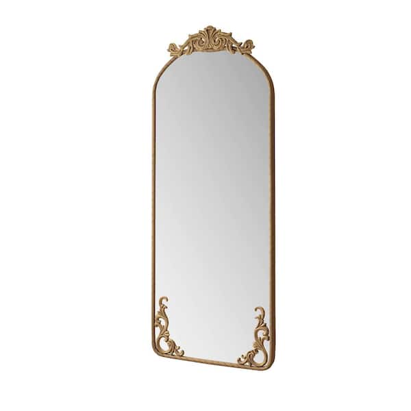 Bronze 24 in. W x 58 in. H Arched Metal Iron Framed Full Body Wall Mirror with Carved Applique