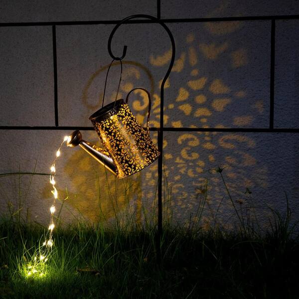 Bronze Iron Solar Lights Outdoor Garden Decor Hanging Waterproof Watering Can Landscape Lights