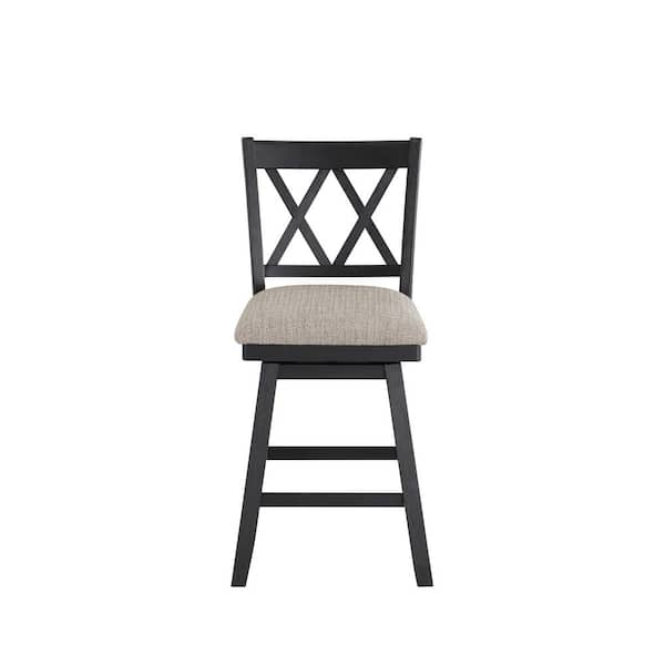 Brookline 24 in. Black High Back Wood 37.5 in. Swivel Counter Stool with Fabric Seat