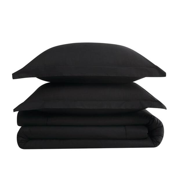 2-Piece Black Solid Cotton Percale Twin/Twin XL Comforter Set