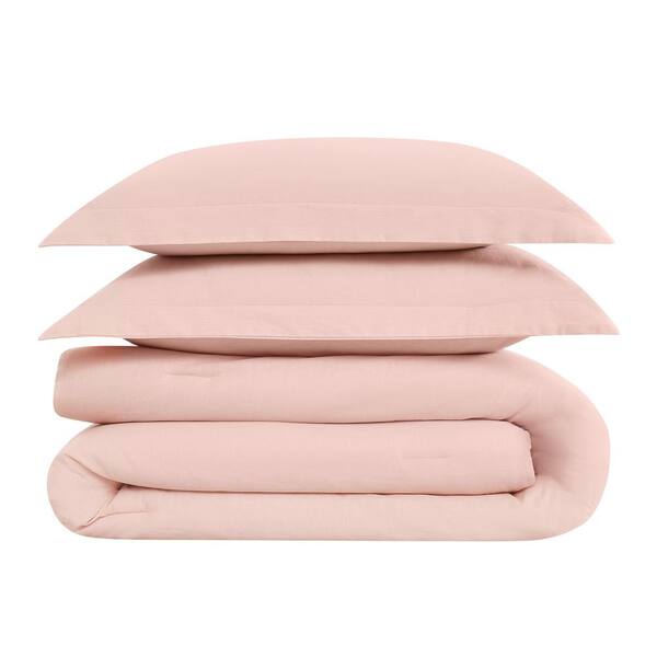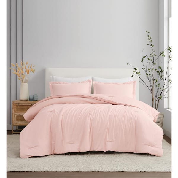 3-Piece Blush Solid 100% Linen Full/Queen Comforter Set