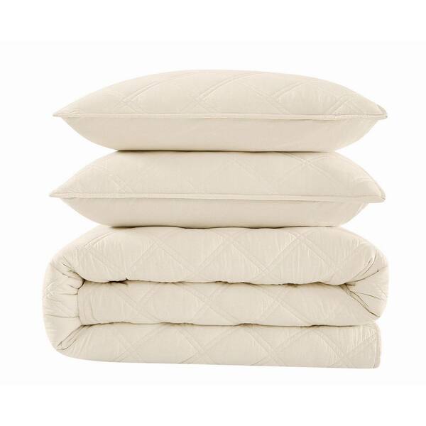 Diamond Washed 2-Piece Natural Solid Cotton Twin/Twin XL Quilt Set