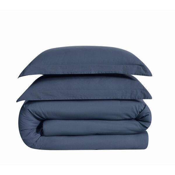 Essential 3-Piece Blue Solid Cotton Full/Queen Comforter Set