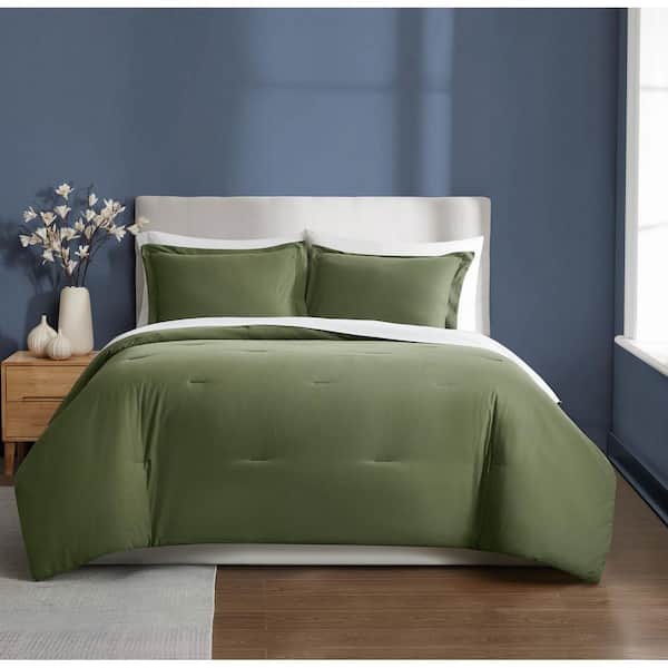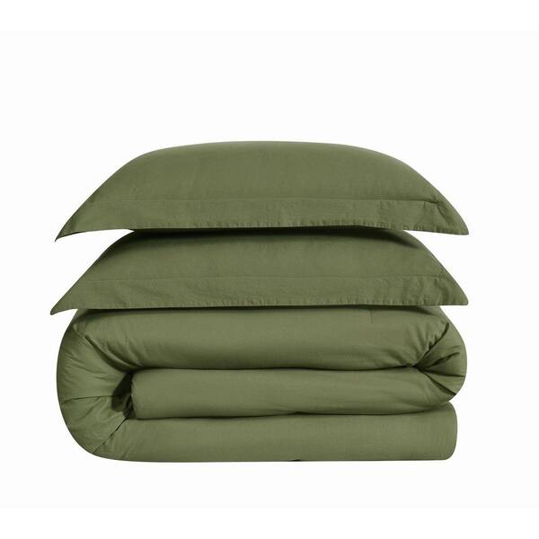 Essential 3-Piece Green Solid Cotton Full/Queen Comforter Set