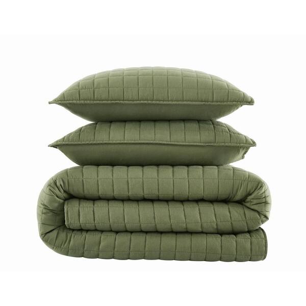 Essential 3-Piece Green Solid Cotton Full/Queen Quilt Set