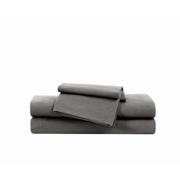 Essential 3-Piece Grey Solid Cotton King Sheet Set