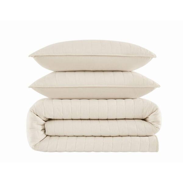 Essential 3-Piece Natural Solid Cotton Full/Queen Quilt Set