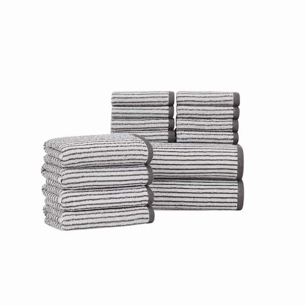 Everyday Jacquard Stripe Grey 14-Piece Cotton Towel Set