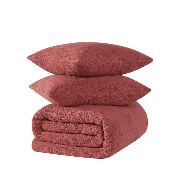 Marshmallow Sherpa Polyester Dusty Rose 3 Piece Full/Queen Comforter Set