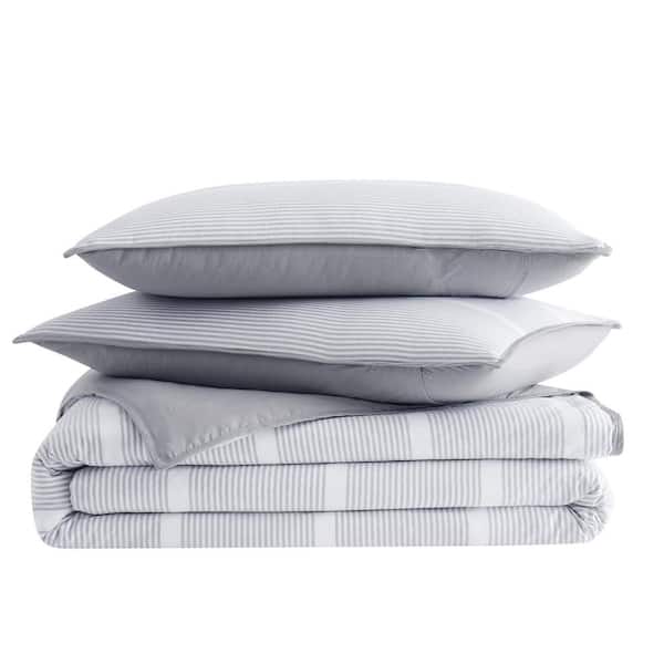 Niari Yarn Dye 3-Piece Grey Stripe Cotton Full/Queen Comforter Set