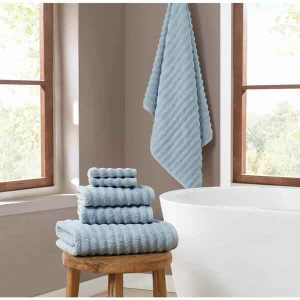 Textured Zero Twist 6-Piece Light Blue Solid Cotton Towel Set