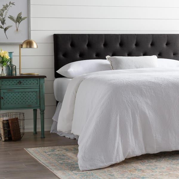 Emmie Adjustable Black Twin Upholstered Low Profile Headboard with Diamond Tufting