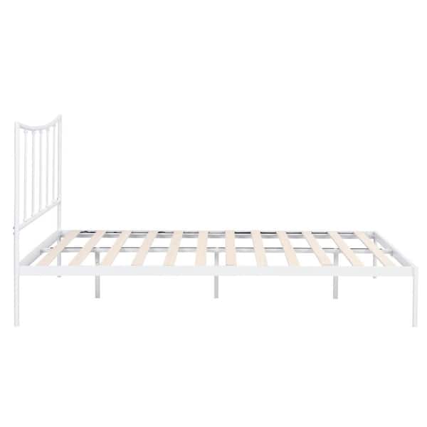 Gemma White Metal Frame Twin Platform Bed with Scooped Vertical Bar Headboard