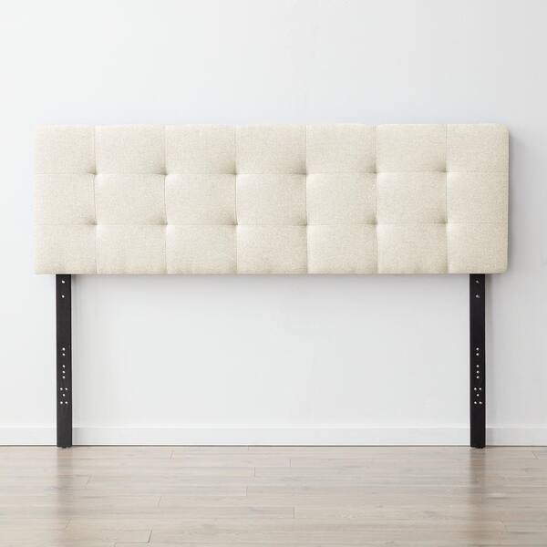 Kaylee Adjustable Ivory Full Upholstered Low Profile Headboard with Square Tufting