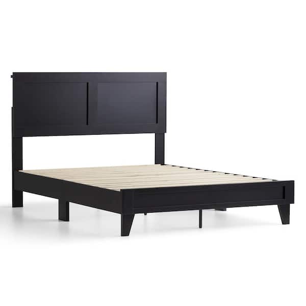 Lily Black King Double Framed Wood Platform Bed with Headboard