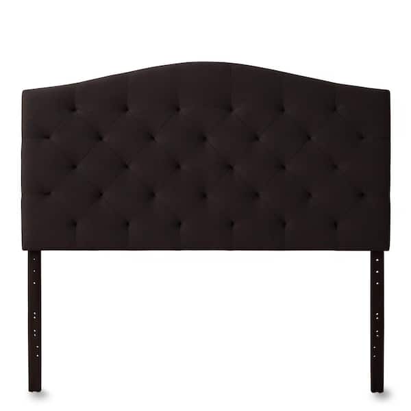 Liza Curved Edge Gray Charcoal Upholstered Full Headboard with Buttonless Diamond Tufting