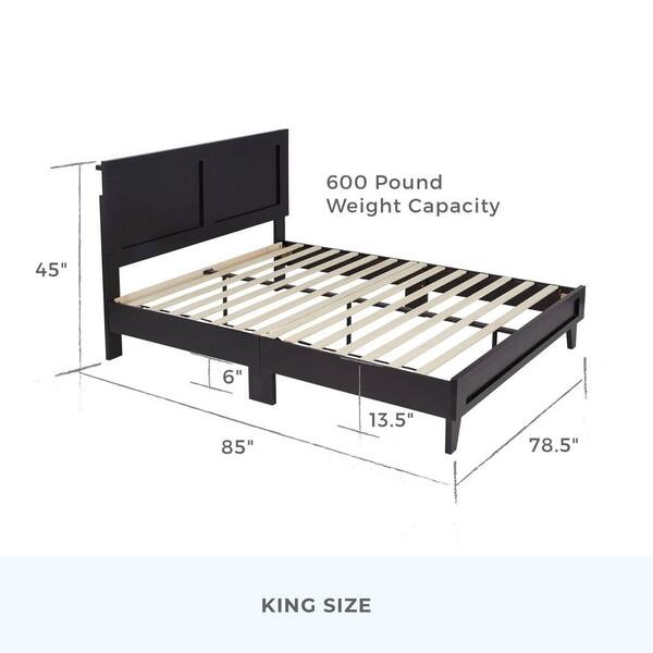 Penny Black Wood Frame King Platform Bed with Double Framed Wood Headboard
