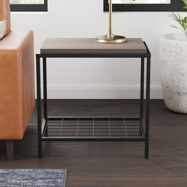 Ruby 24 in. Gray Ash Rectangle Wood and Metal End Table