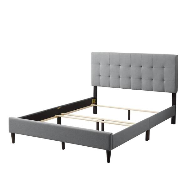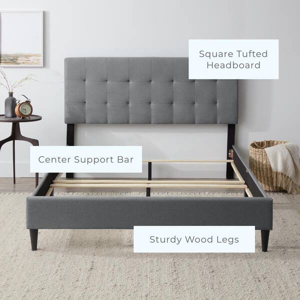 • Upholstered platform bed frame with linen-like fabric headboard