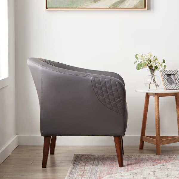 Vera Gray Faux Leather Upholstered Barrel Accent Chair