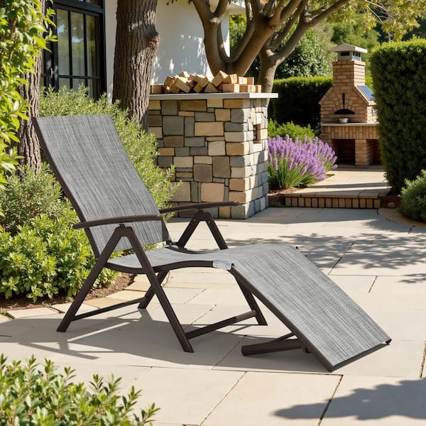 Brown 1-Piece Adjustable Metal Outdoor Chaise Lounge