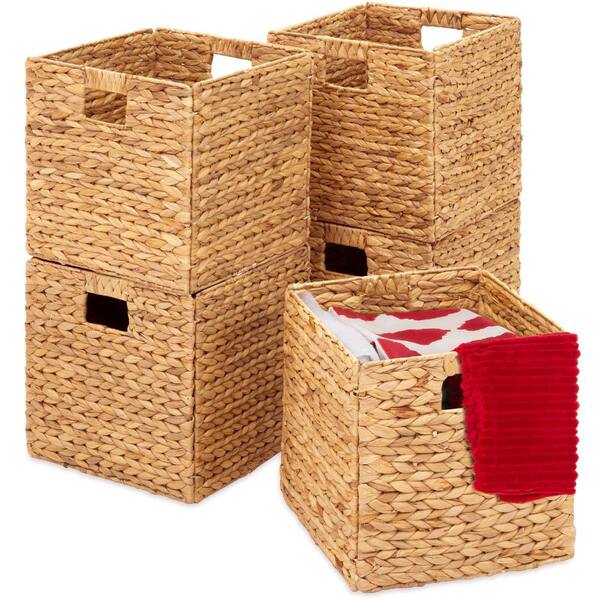 Brown 12 in. x 12 in. Polyethylene Decorative Basket Set of 5 with Handles