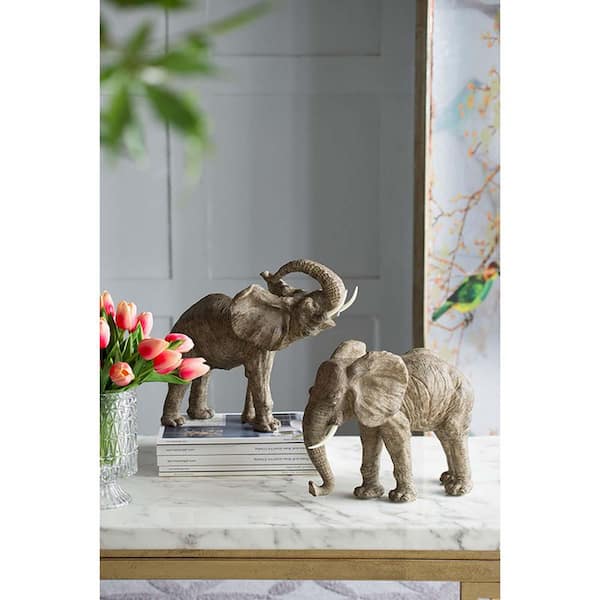 Brown 15 in. x 12 in. Plastic Elephant Statue for ​Office Desktop, Room Decor for Shelf Table Living Room Nightstand