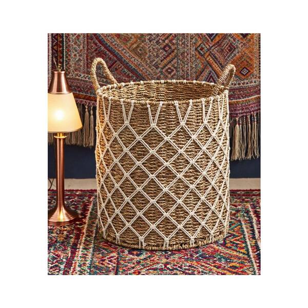 Brown 15 in. x 18.5 in. Water Hyacinth Water Hyacinth and Wicker Woven Decorative Basket for Clothes and Towels