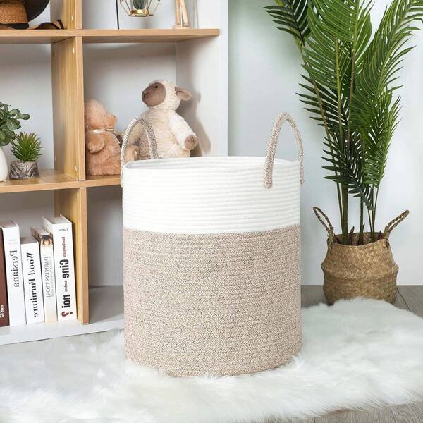 Brown 16 in. x 18 in. Cotton Decorative Basket Set of 1 with Handles