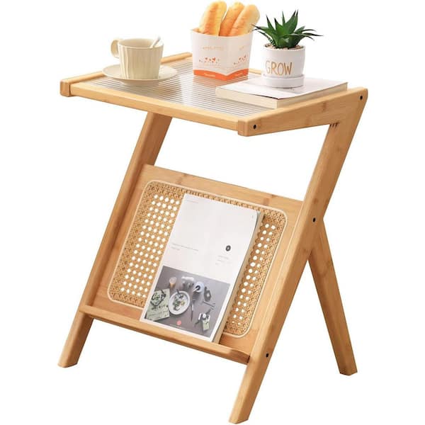 Brown 17.7 in. x 22 in. Rattan Freestanding Magazine Rack