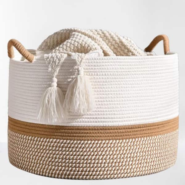 Brown 20 in. x 13 in. Cotton Farmhouse Decorative Basket for Storage (Set of 1)