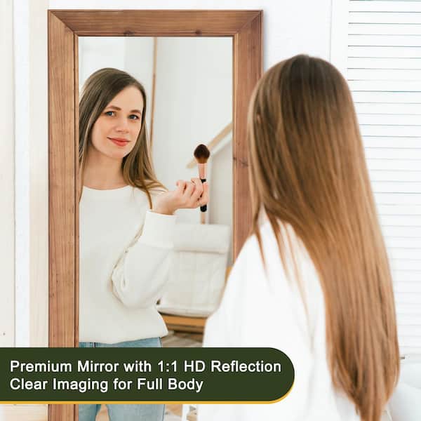 Brown 22 in. W x 65 in. H Rectangle Wood Full Length Mirror Standing Mirror