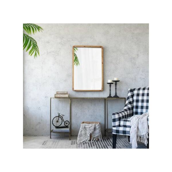 Brown 23.6 in. W x 35.4 in. H Farmhouse Natural Rectangle Wood Framed Mirror for Living Room Bedroom Entryway