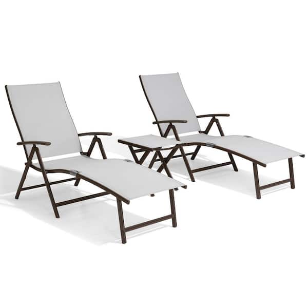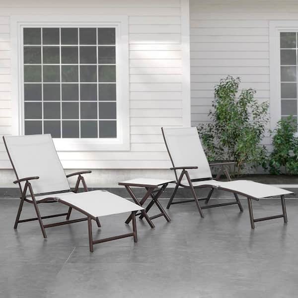 Brown 3-Piece Metal Outdoor Chaise Lounge