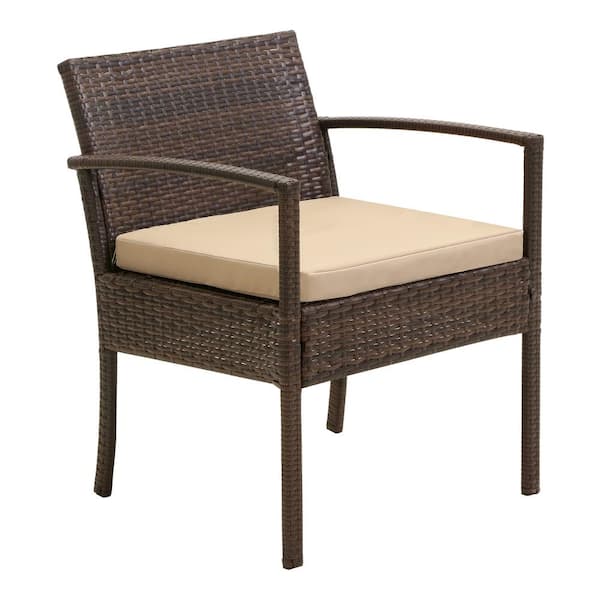 Brown 3-Piece Wicker Patio Conversation Set Outdoor Bistro Set Furniture Set with Brown Cushions and Side Table