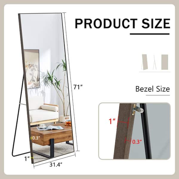 Brown 31.4 in. W x 71 in. H Soild Wood Framed Rectangle Standing Full Floor or Wall Mounted Mirror for Bath, Living Room