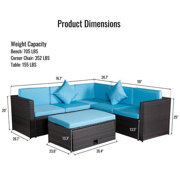 Brown 4-Piece Wicker Outdoor Garden Patio Furniture Sectional Sofa Sets with Blue Cushion and Pillow