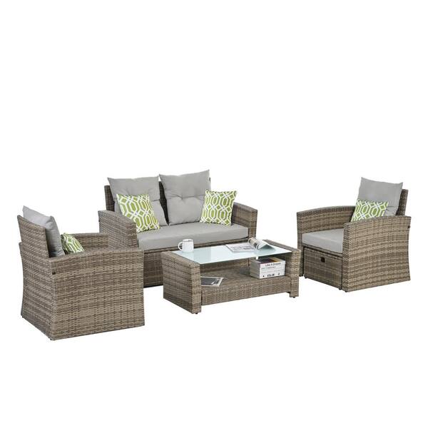 Brown 6-Piece Wicker Outdoor Sectional Set, Patio Furniture Set with Coffee Table and Grey Cushions Garden, Backyard