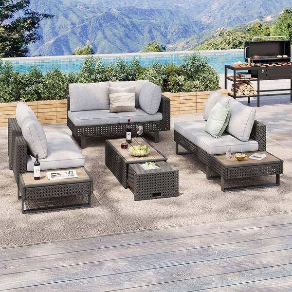 Brown 6-Piece Wicker Outdoor Sectional Sofa Set Patio Furniture Set with Gray Cushions and Coffee Table