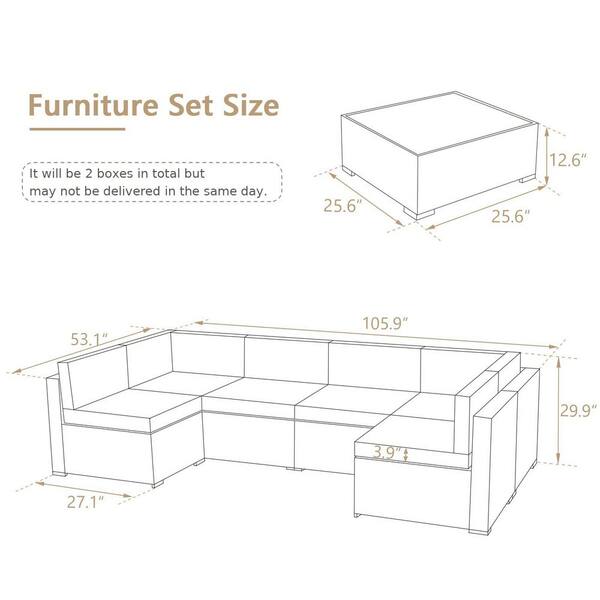 Brown 7-Piece Wicker Outdoor Patio Sectional Set, All Weather Rattan Conversation Set with Red Cushions and Coffee Table