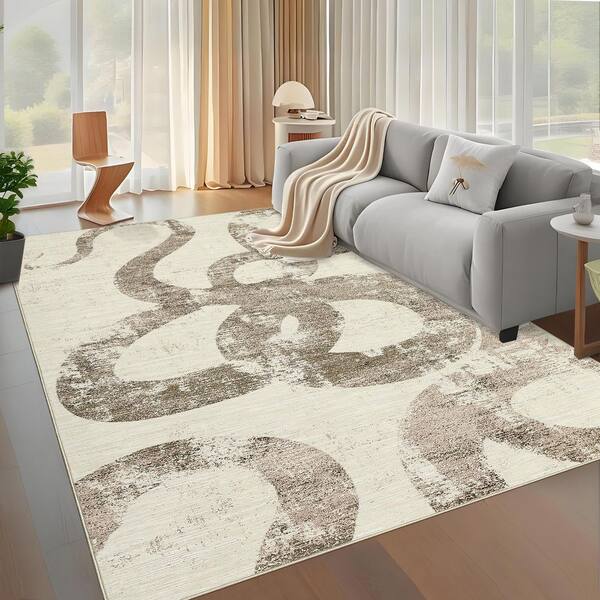Brown 8 ft. x 10 ft. Ultra Thin Low Pile Foldable Lightweight Snake Print Washable Polyester Area Rug