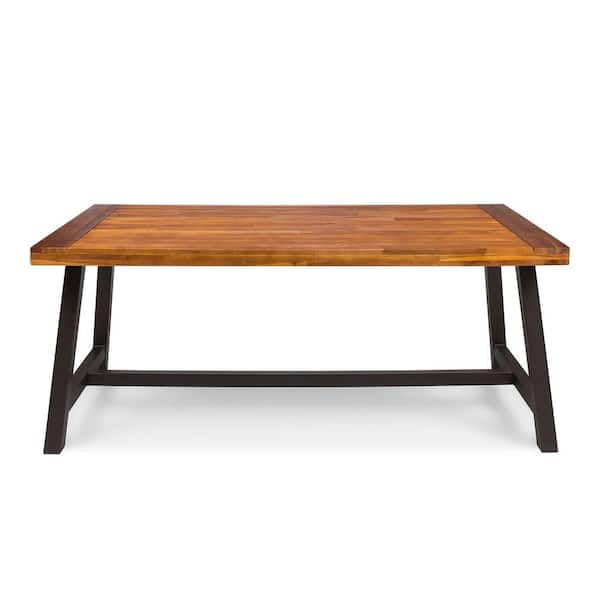 Brown Acacia Wood Metal Outdoor Dining Table with Rustic Iron Legs